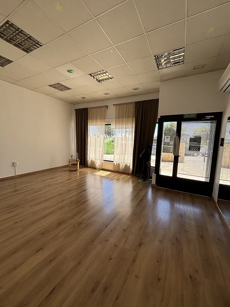 La Sala Star cuenta con 30 m², suelo de madera y un amplio ventanal que inunda el espacio de luz natural. Dispone además de un espejo de aprox. 1,5 x 1,5 m, ideal para actividades corporales y de movimiento.