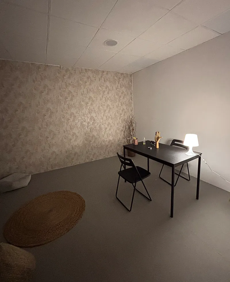Sala acogedora, con mesa. Ideal para masajes (si traes tu camilla) o consultas individuales.